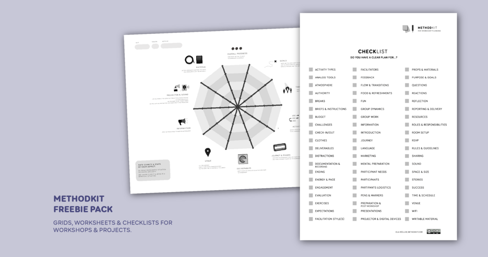 Over the years we have made additional tools to make it easier to work with MethodKit. It is a mix of grids, gameboards and worksheets that can be used together with MethodKit, or in the same workshop.